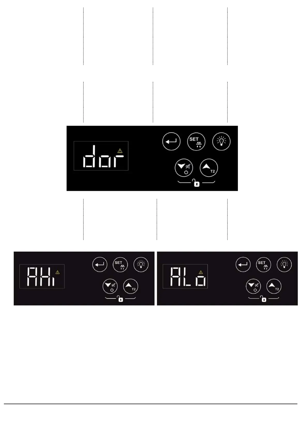 Inomak CFP2144 - Specific Fault Conditions and Alarms; Sensor Failure and Door Alarms; High and Low Temperature Alarms