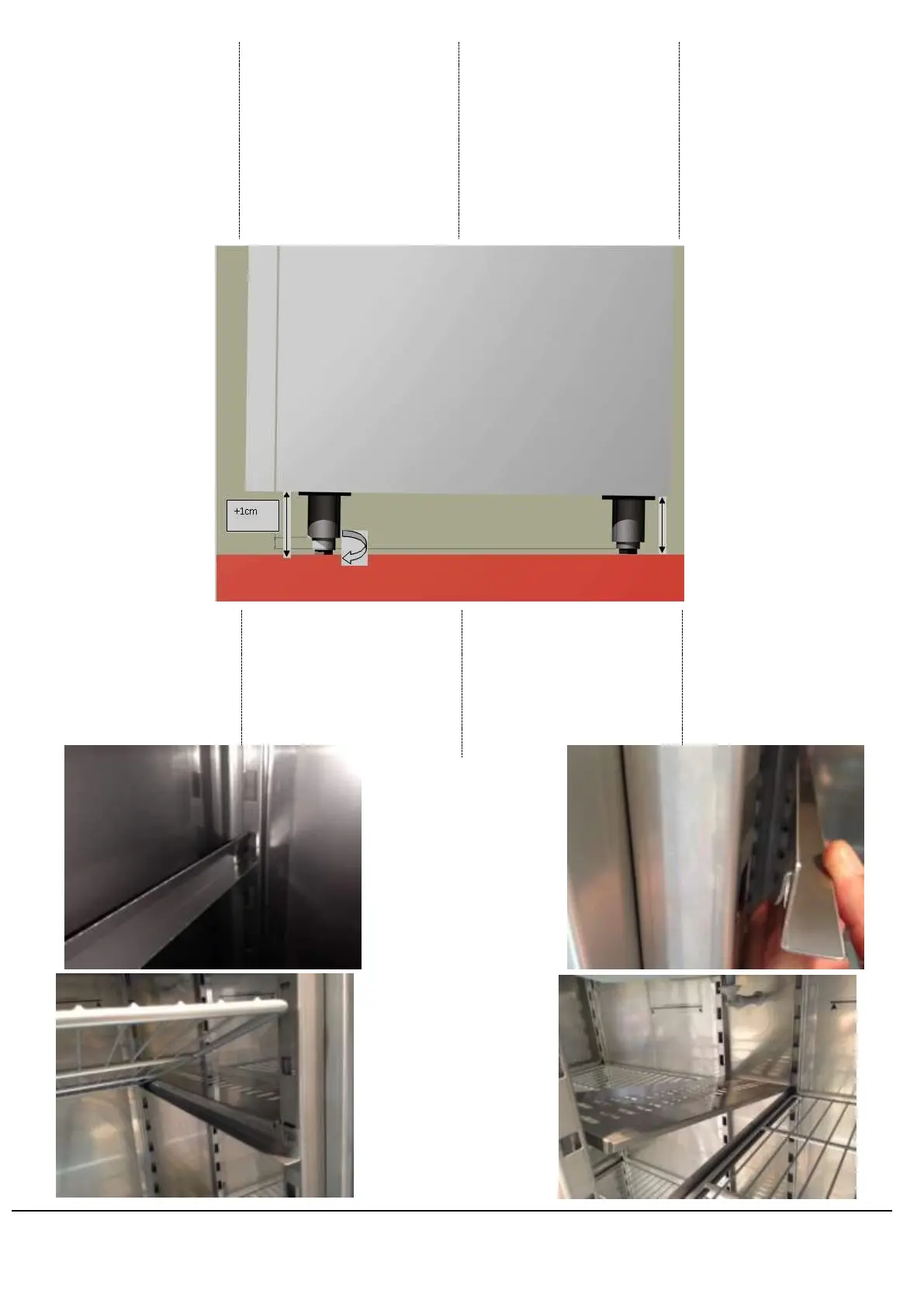 Inomak CFP2144 - Appliance Setup and Adjustment; Leveling Legs for Door Alignment; Internal Shelf and Guide Placement