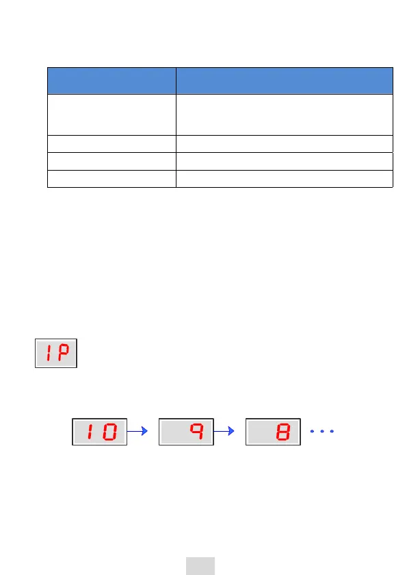 In the STOP state, press and hold the MFK key until the LED screen displays I.P.,