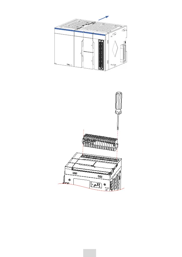 1. Pull down all the DIN rail mounting hooks on the back of the module (as shown