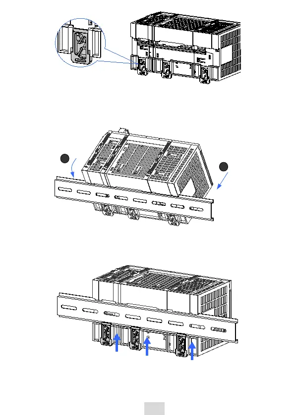 3. Push the DIN rail mounting hooks onto the DIN rail. Push the hook up until you