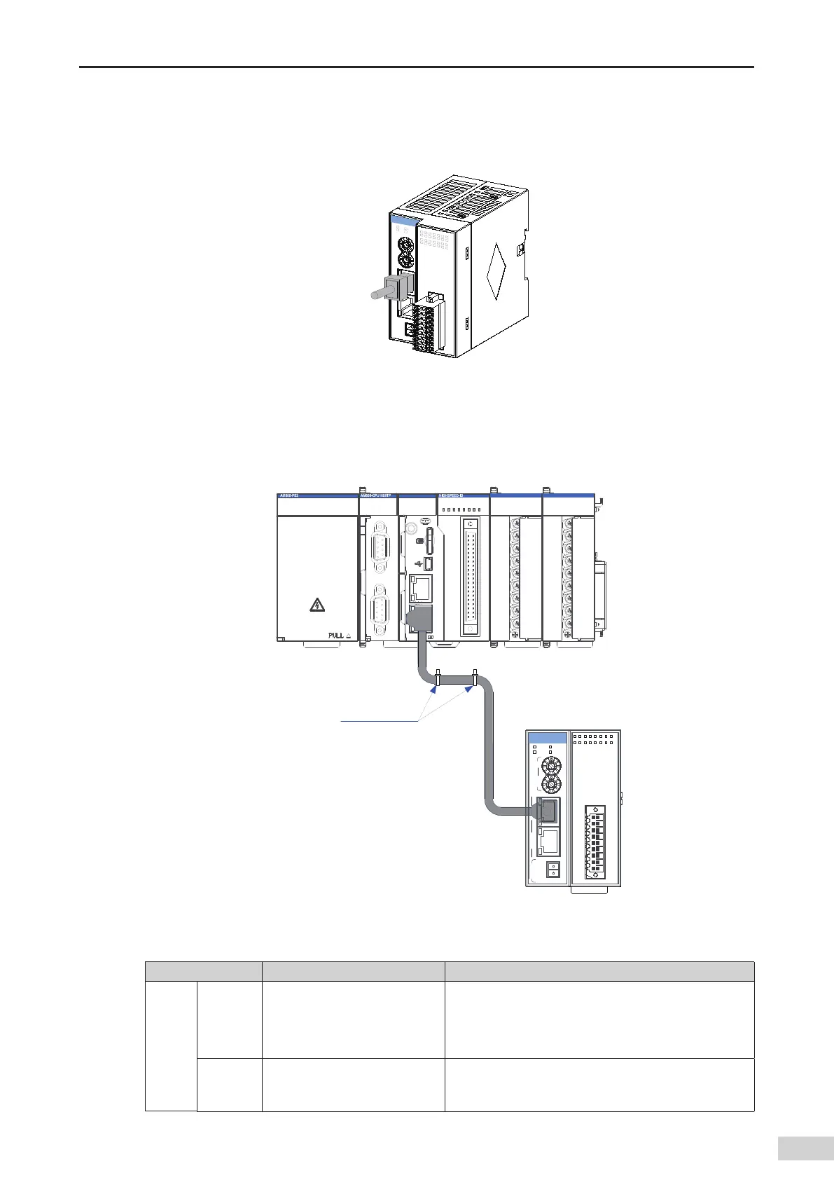 Hold the RJ45 connector (with a cable) and insert it to the EtherCAT socket of the communication