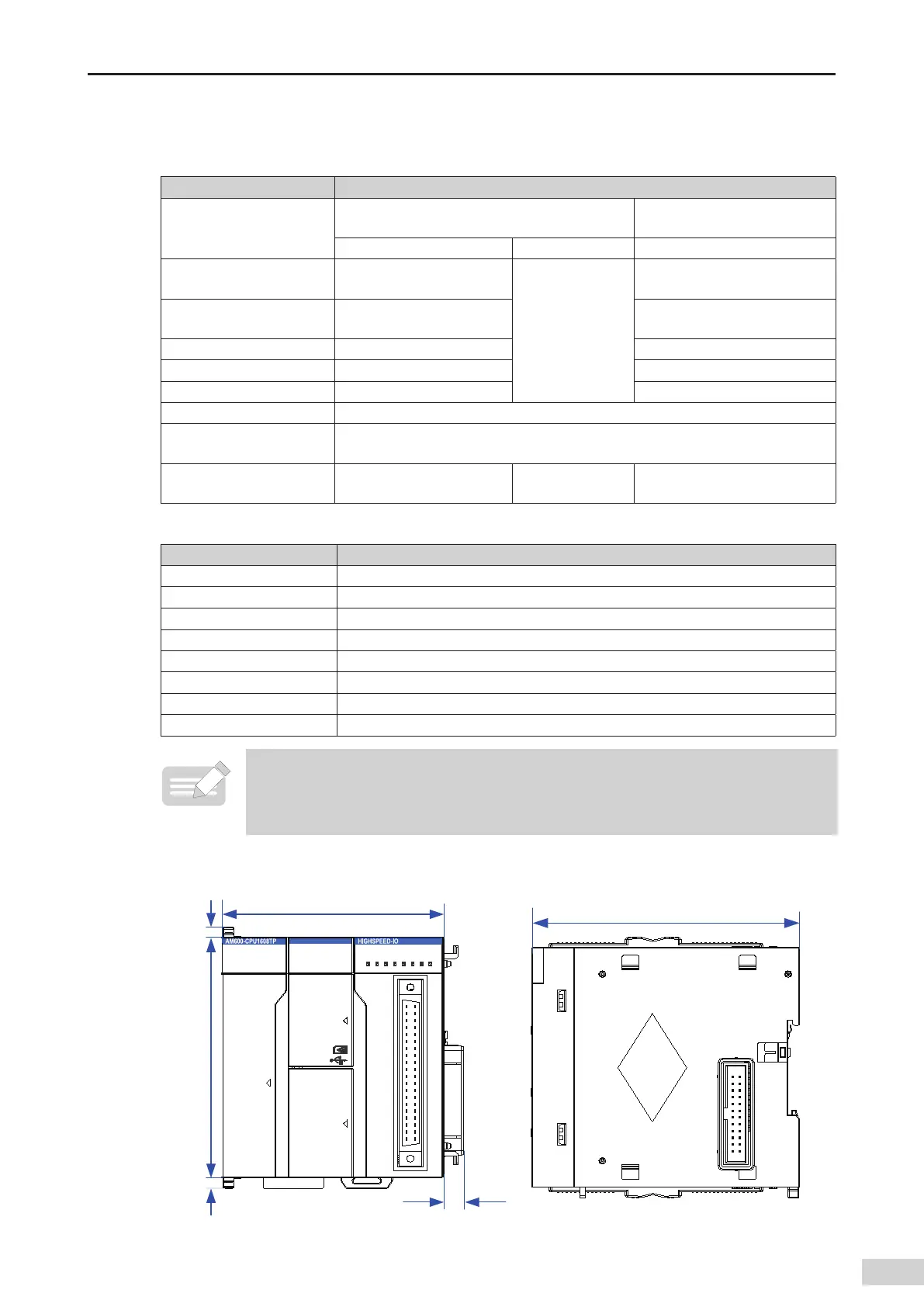 Figure 3-5 Dimensions of the CPU module (AM600-CPU1608TP as an example)