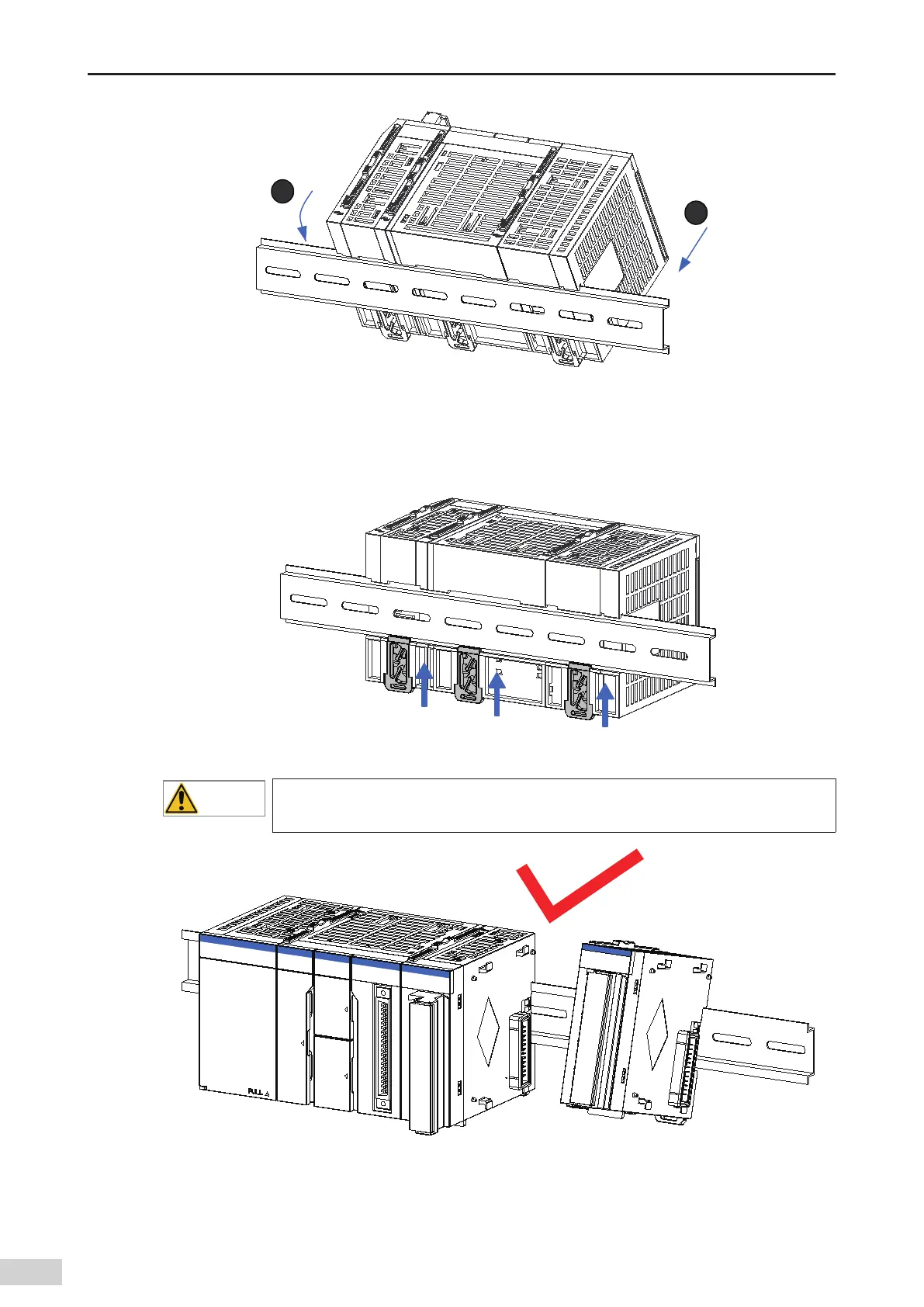 Do not install by sliding the module from the end of the DIN guide rail; otherwise