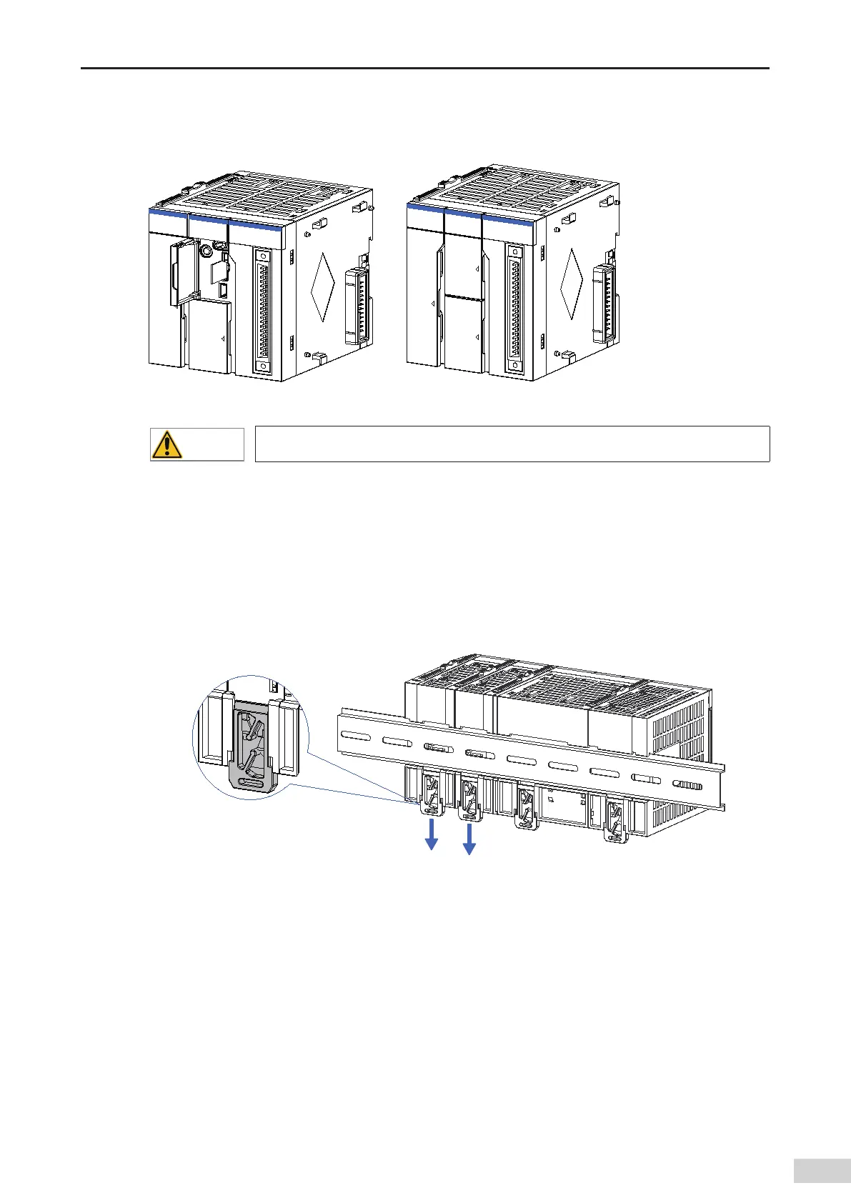 Pull out the DIN guide rail installation hooks of the module to be replaced and the module on the right