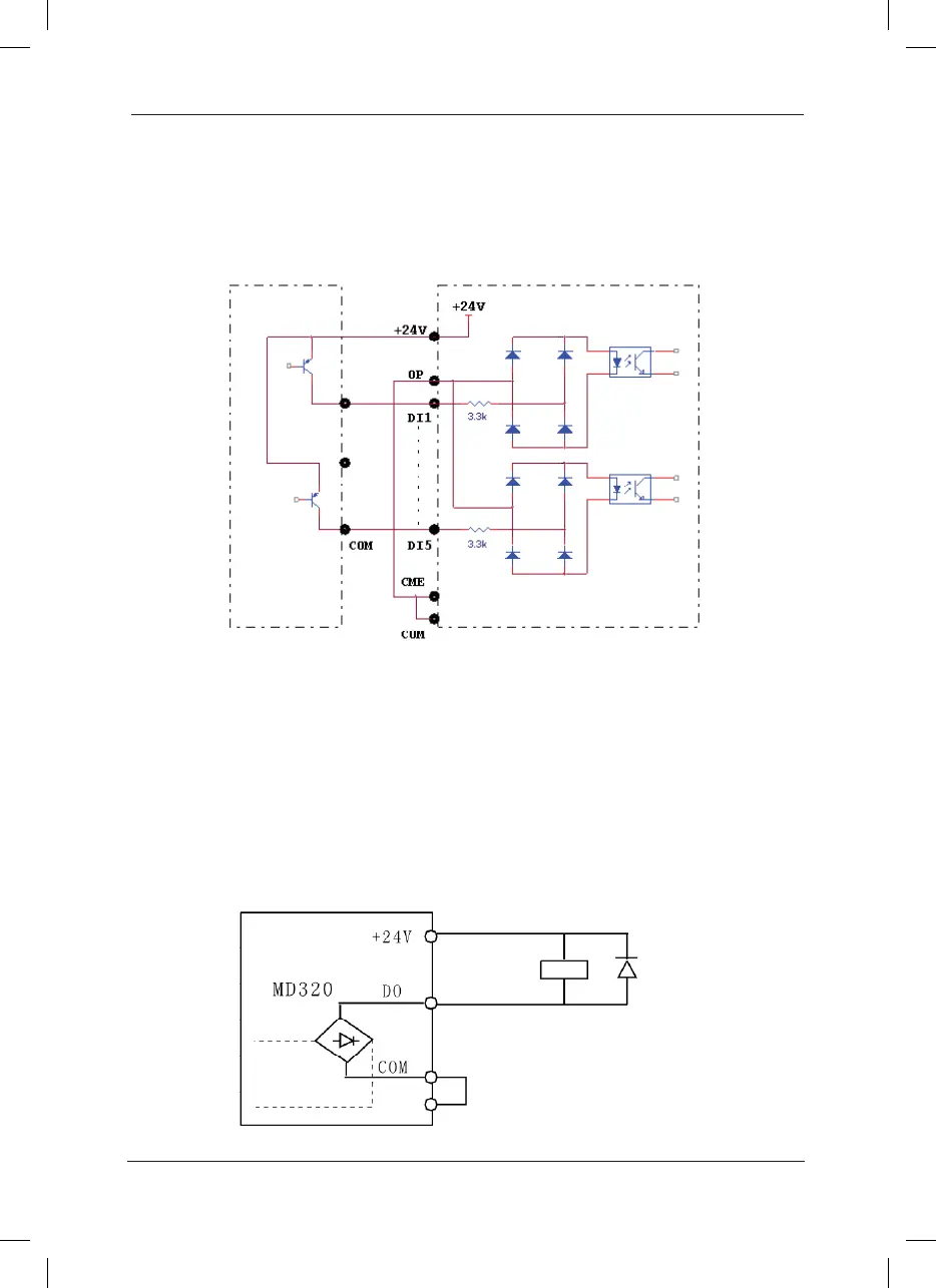 When the digital output terminal needs the drive relay, absorption diode shall be installed at the