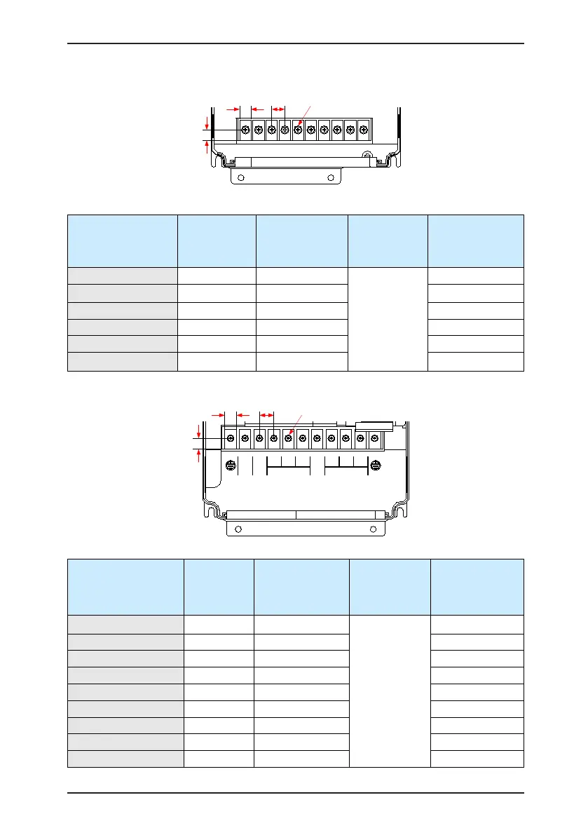 Figure 8-4 Dimensions of power terminals of the MD380 (size C)