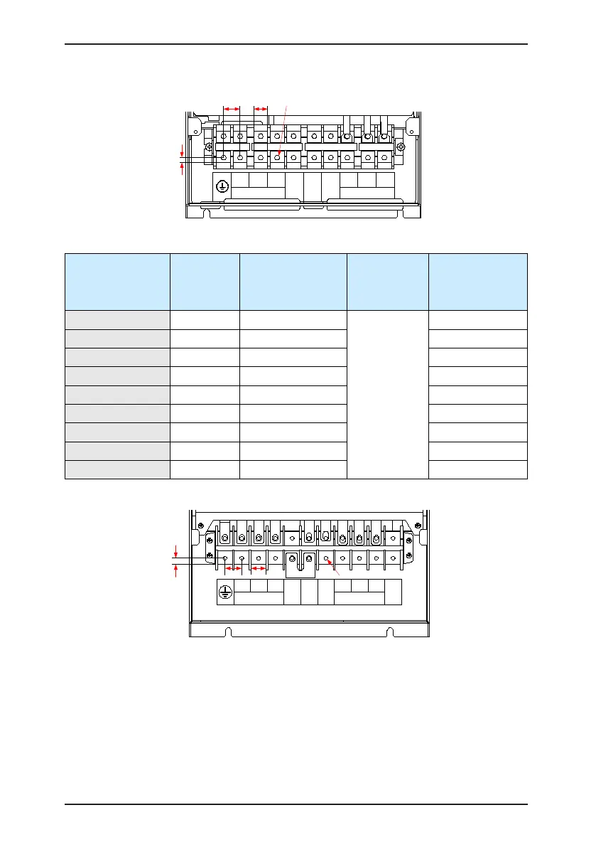 Figure 8-6 Dimensions of power terminals of the MD380 (size E)
