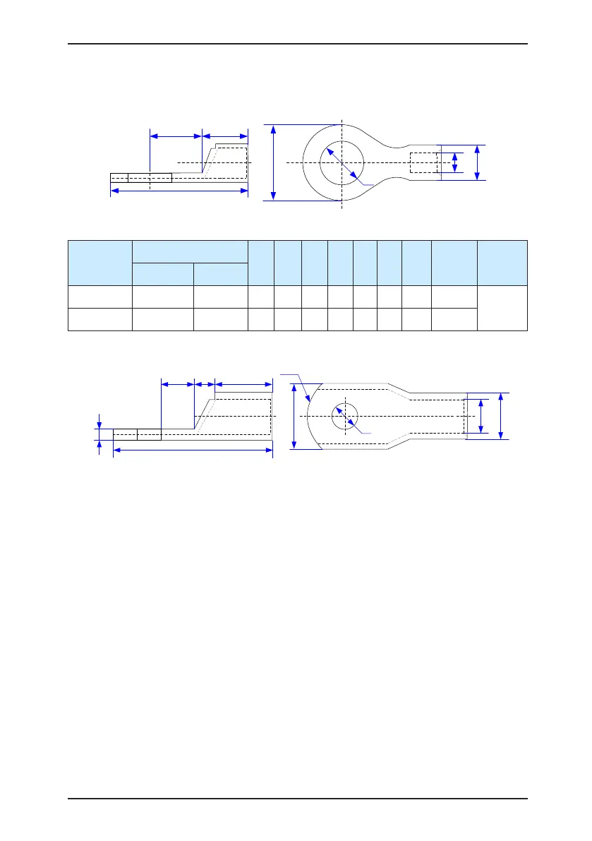 Figure 8-14 Dimensions of recommended GTNR series cable lugs