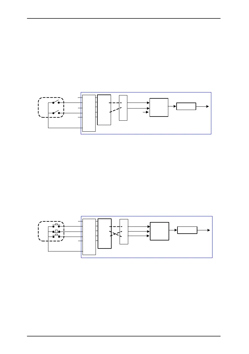 In the preceding gure, when SW1 is ON, the AC drive instructs forward rotation; when