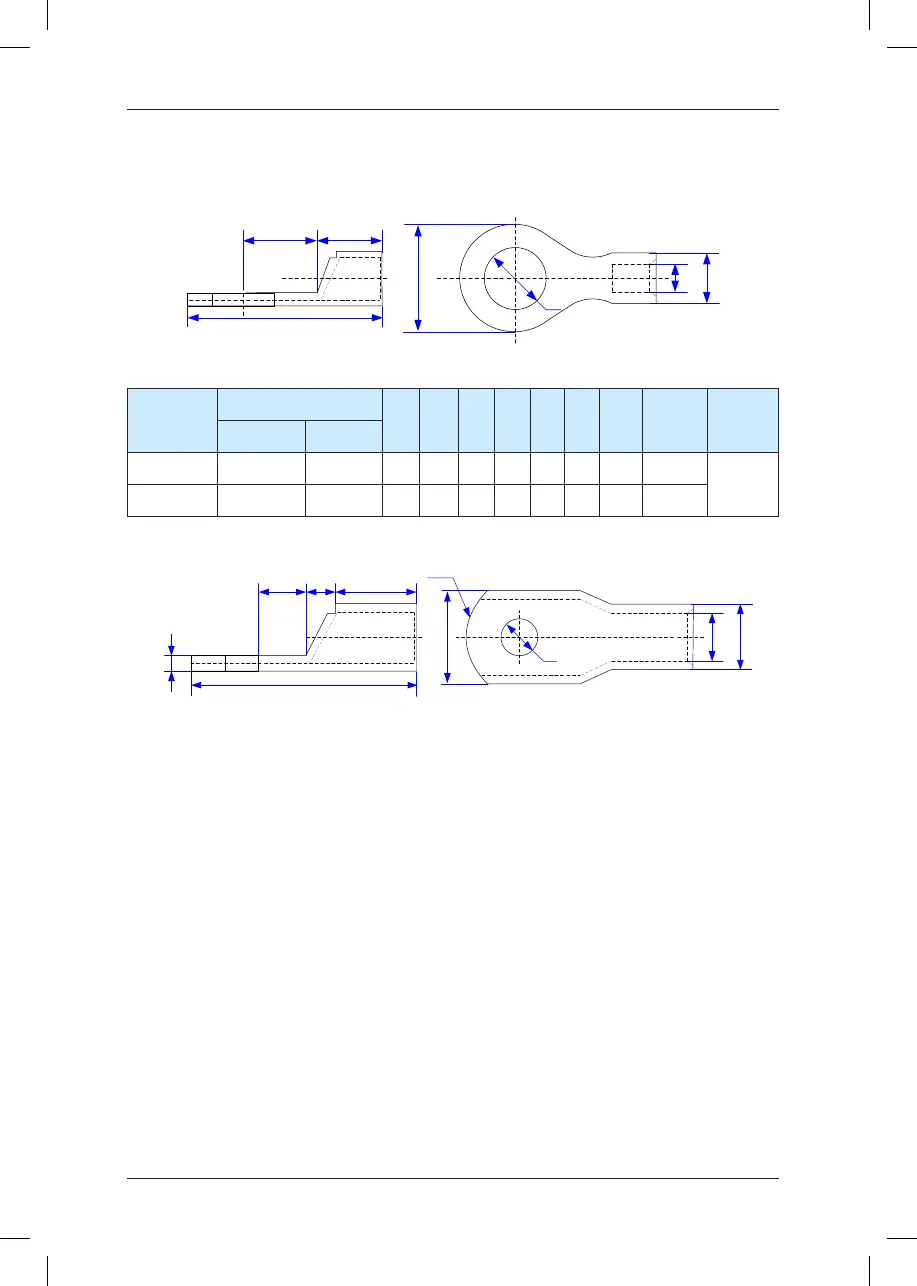 Figure 8-14 Dimensions of recommended GTNR series cable lugs