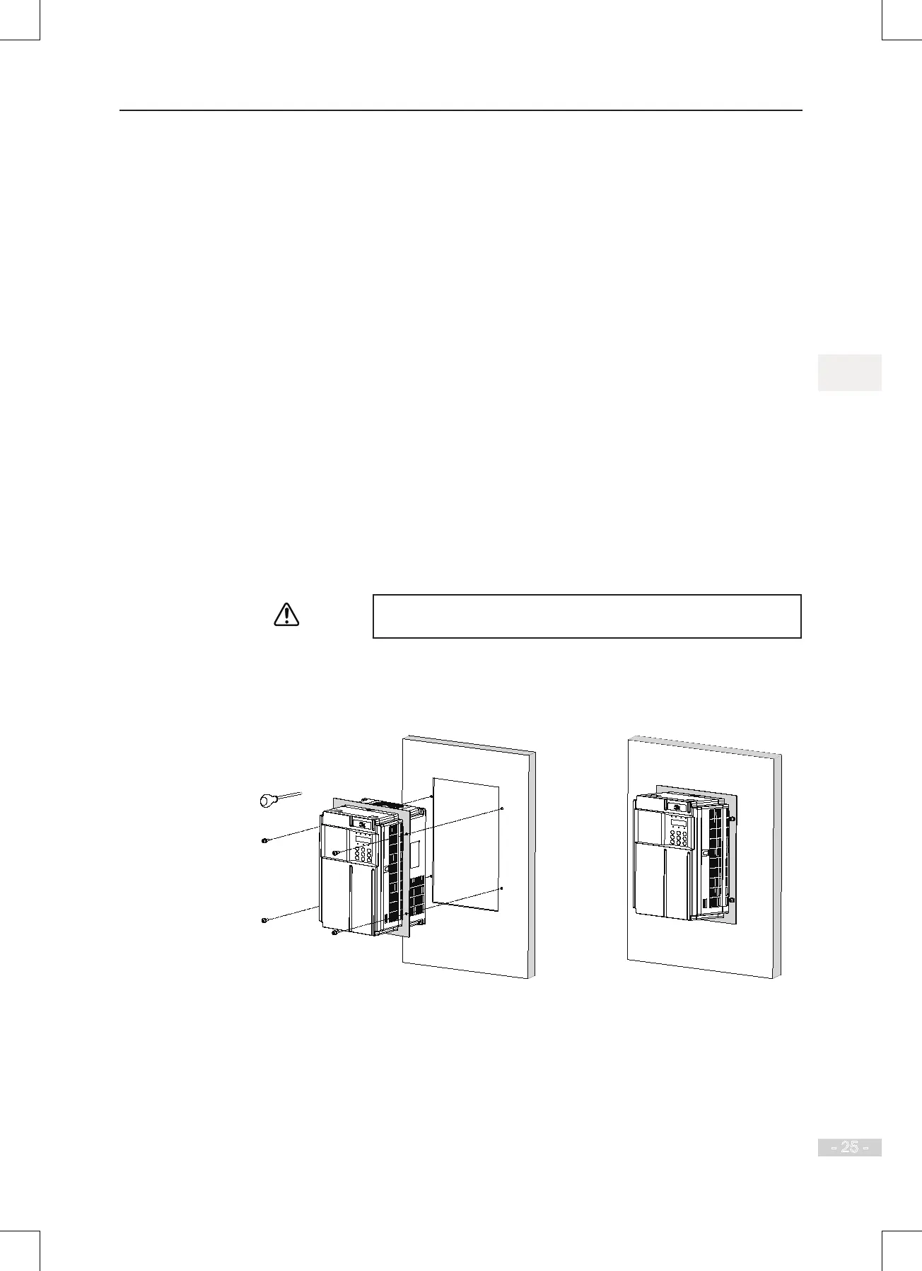 ● Insert securing screws/bolts in the brackets, and secure the AC drive to the backplate.