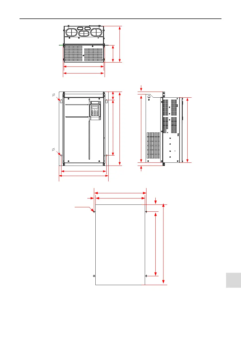 Figure 8-11 Dimensions of through hole mounting bracket and hole of MD500T75G(B) to MD500T110G