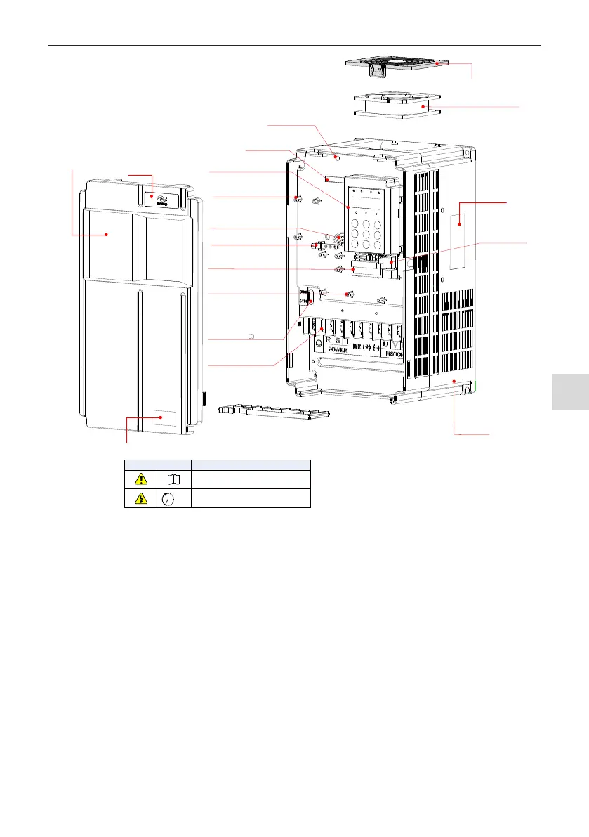 Figure 1-3 Schematic diagram of product parts (three-phase, 380V - 480V, MD500T18.5G(B) to MD500T-