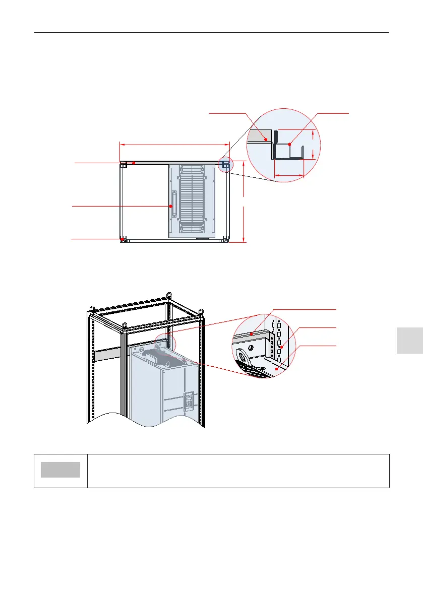 (1) A nine-folding AL cabinet (PS cabinet) is recommended for installation of the drive. The cross section of