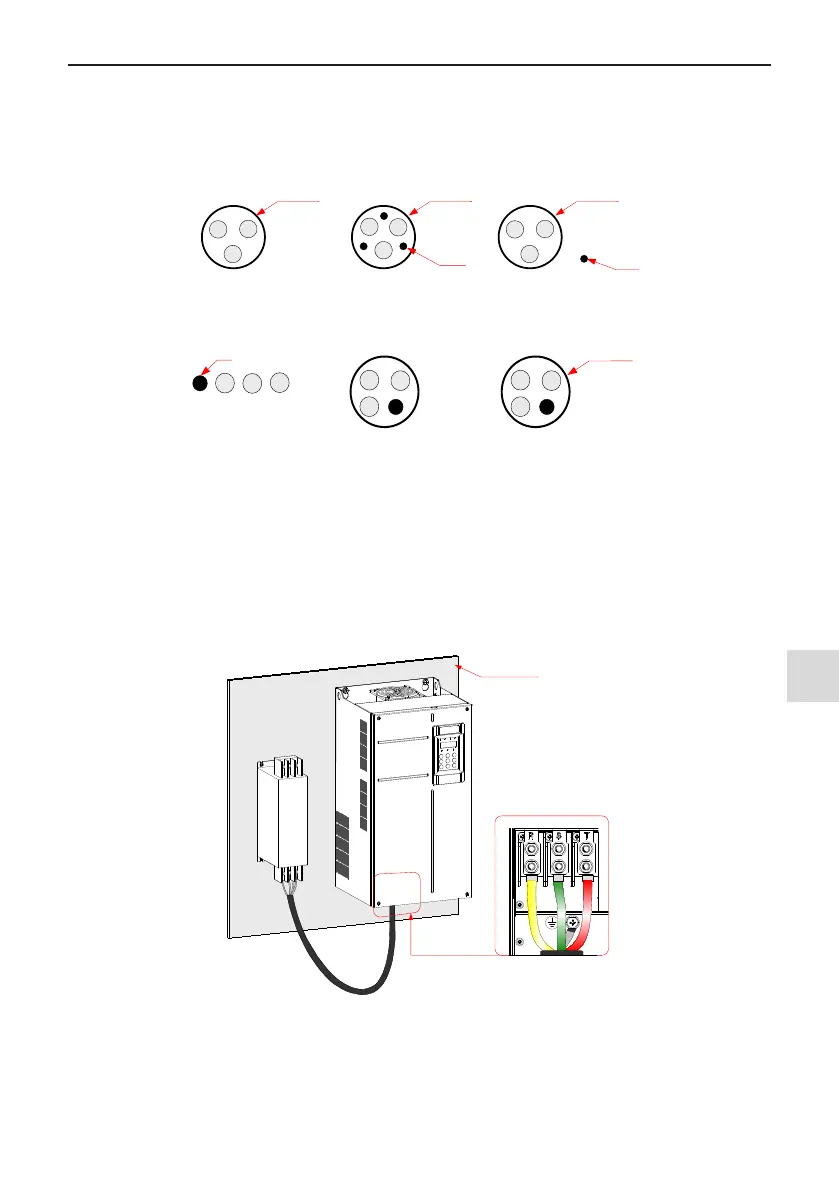 Install lter close to power input side of the AC drive with a cable shorter than 30 cm. Connect the ground