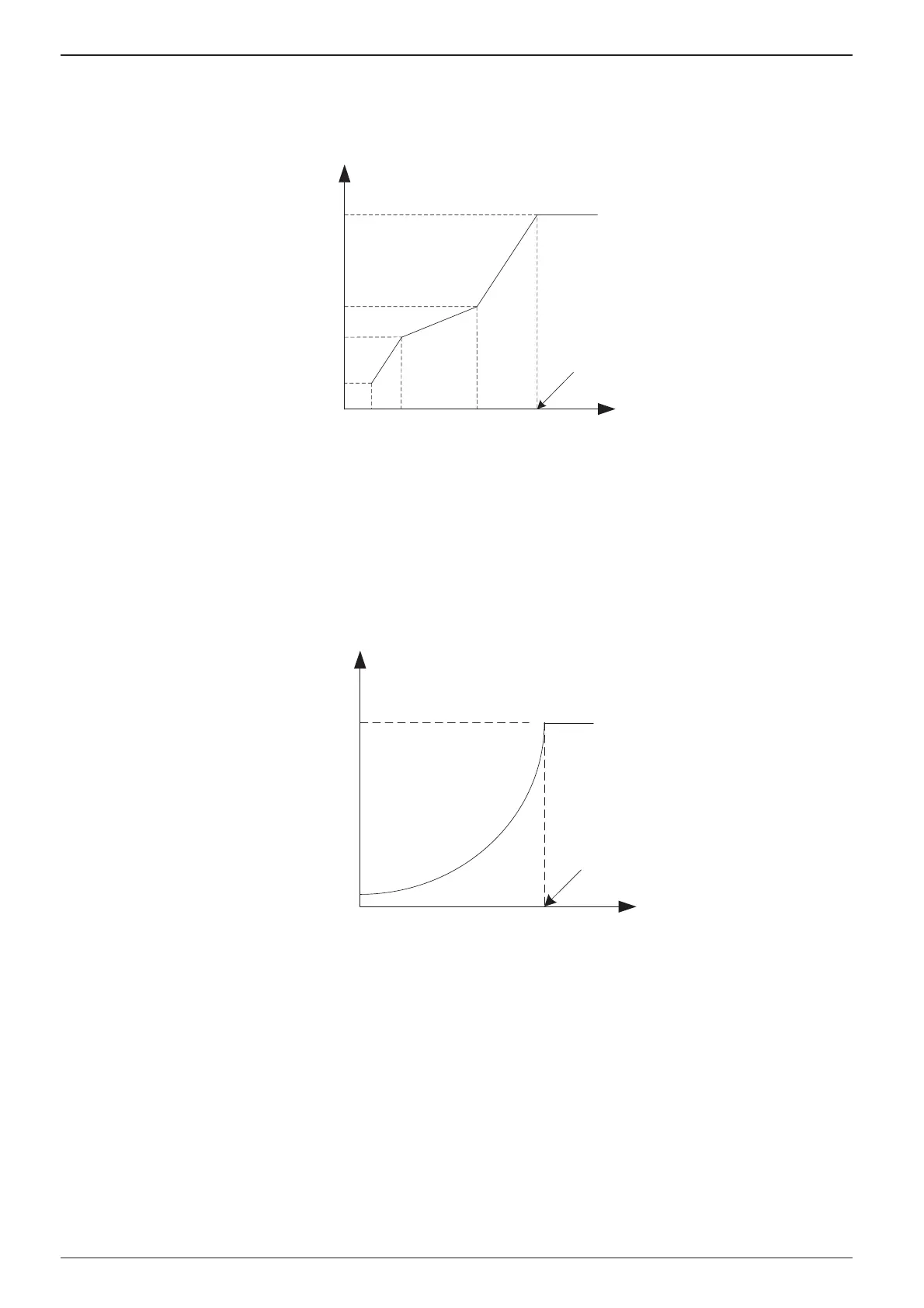 The output voltage and the output frequency change according to the square curve when below the rated frequency. It is
