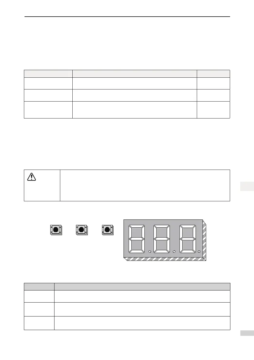 The onboard keypad consists of three 7-segment LEDs and three buttons. You can view information about