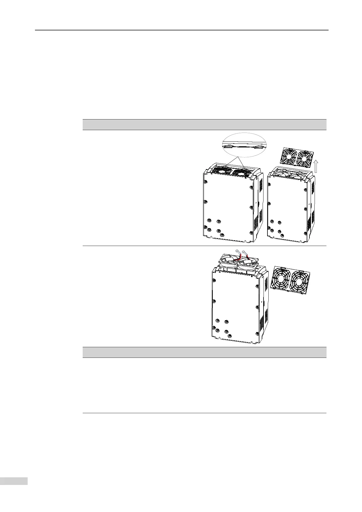 Put the fan into the controller, and ensure mounting hole alignment. Pay attention to the