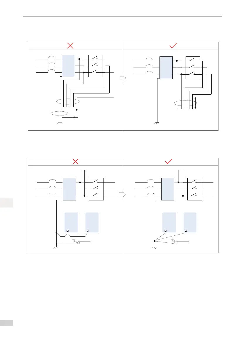 Figure 3-19 Diagramforseparatedcablingofnoiseltergroundingcableandoutputcable