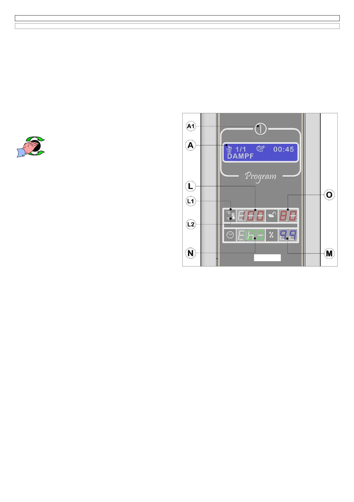 kann. Das elektronische System erscheint auf dem Display (A) die Schrift “HOHE TEMP.”, immer wenn man eine Dampf-Phase mit Garraumtemperatur