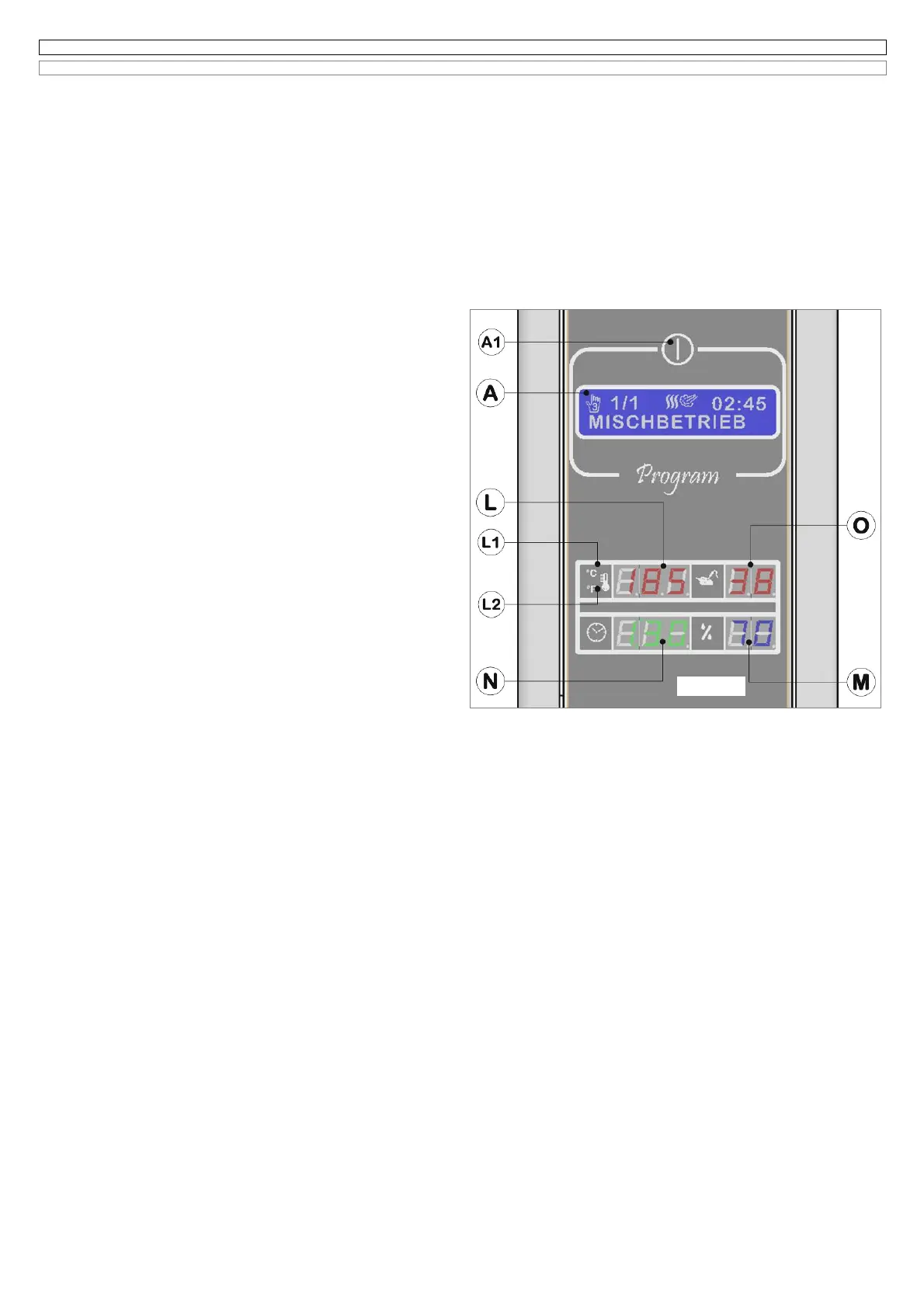 4 Auf dem Leuchtdisplay (O) erscheint die Temperatur des KTFs , wenn diese Funktion im letzten Garzyklus aktiv war, hingegen wird der Display (O)