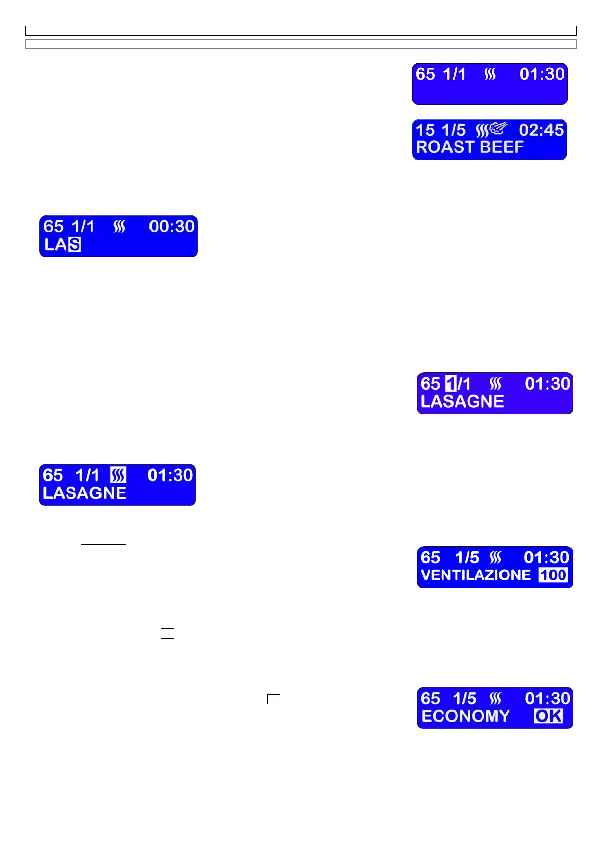 Wenn das Garprogramm früher ein Garzyklus schon gespeichert hat, werden alle Displays die Daten des