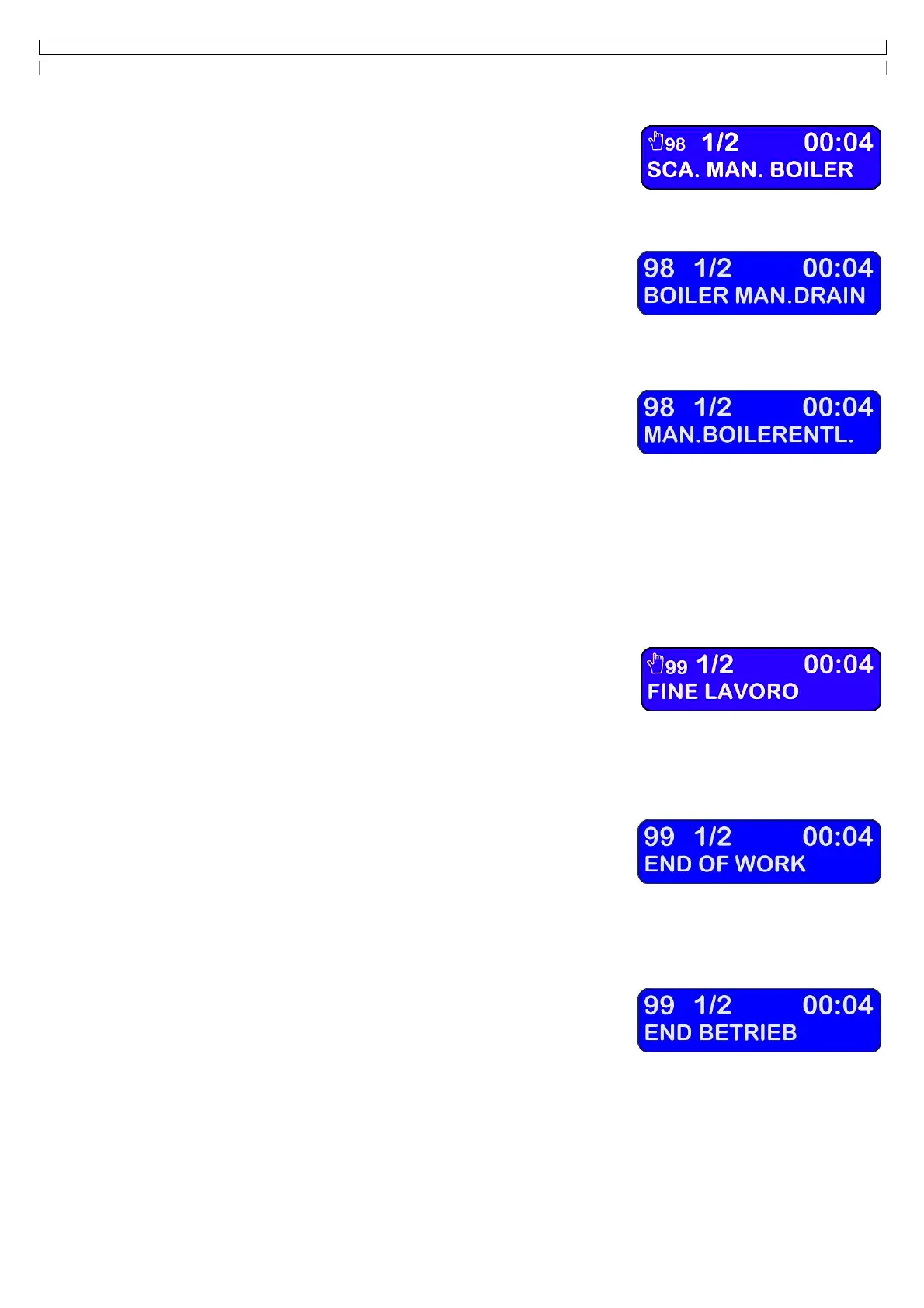 7.4 AUTOMATIC PROGRAM N°98. (MANUAL DISCHARGE OF THE BOILER)