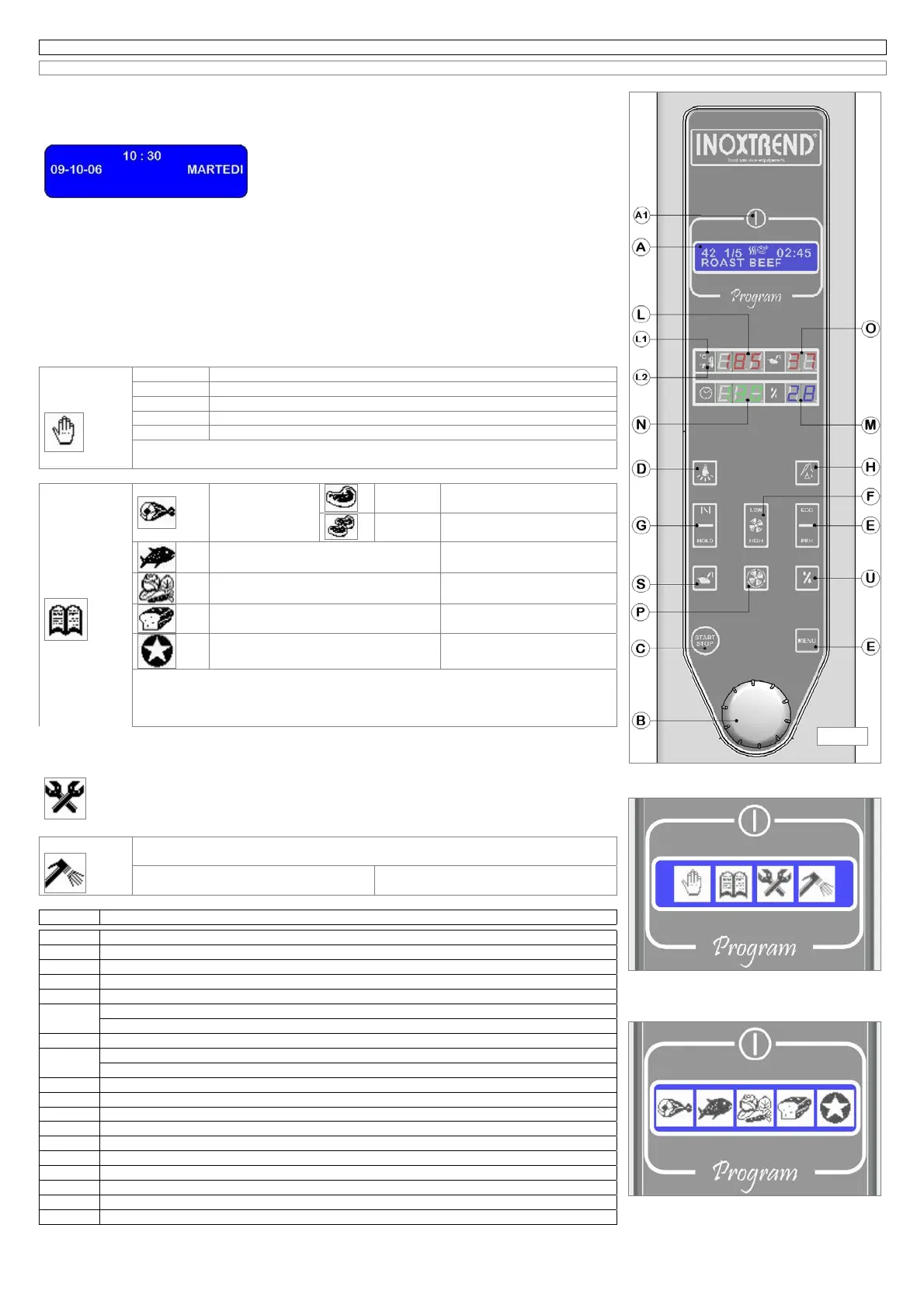l’ultimo programma di cottura utilizzato, si attiveranno i display (L) (M) (N) (O) in conformità al