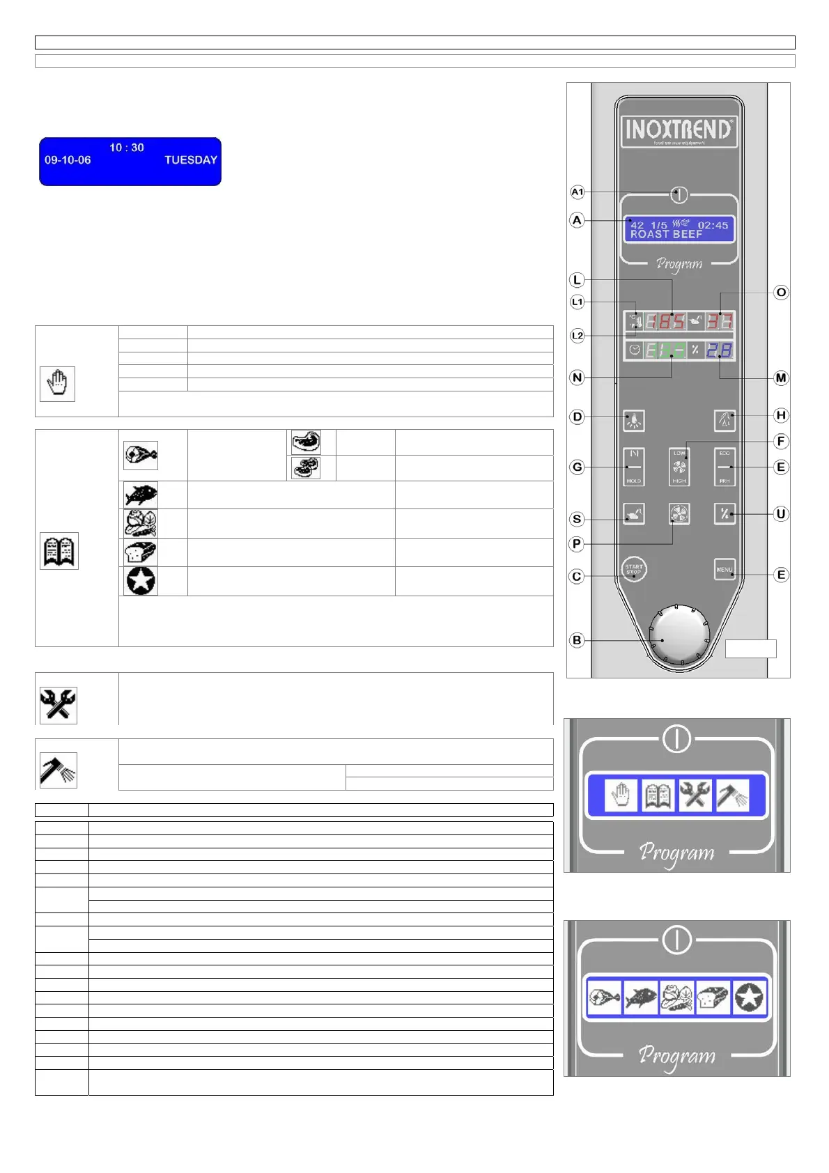last used cooking cycle, and the displays (L) (M) (N) (O) will switch on in accordance with the program