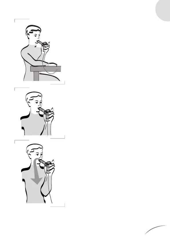 Breathe in through the mouthpiece as