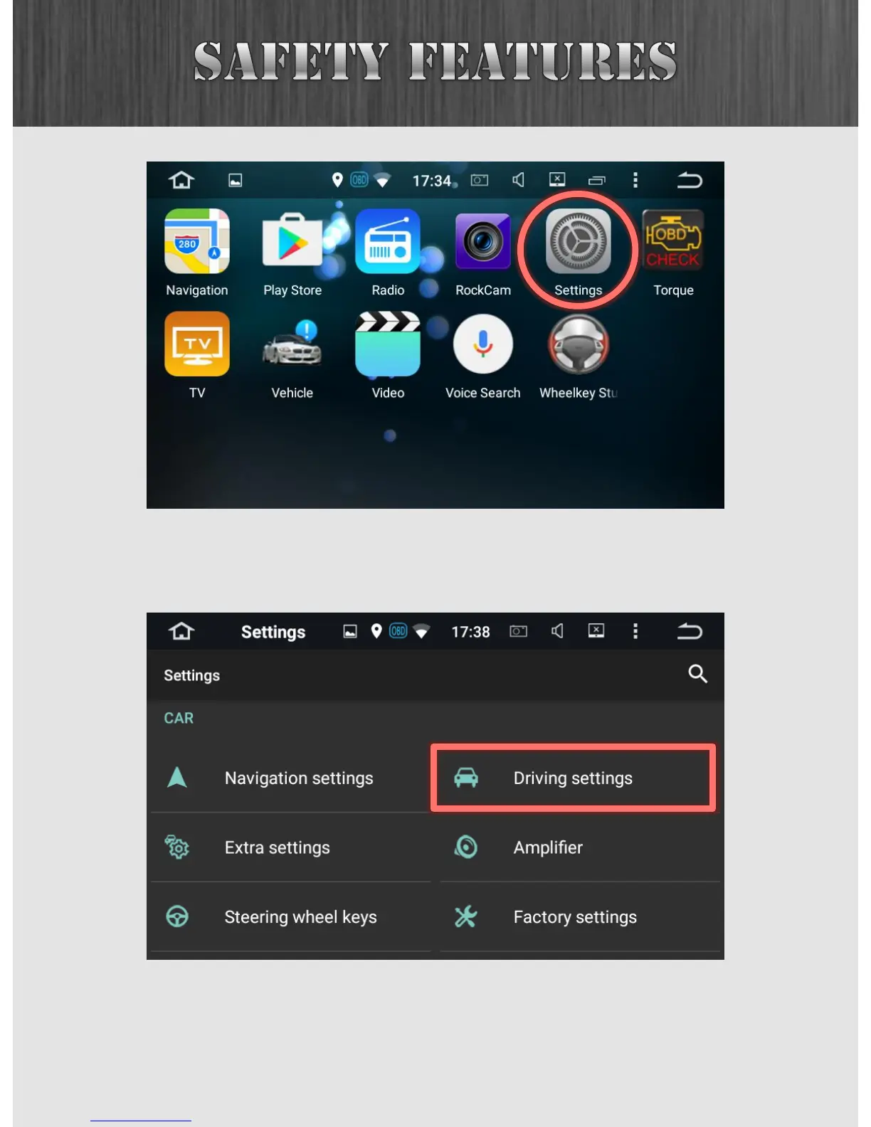 the menu and tap on “Driving settings”.