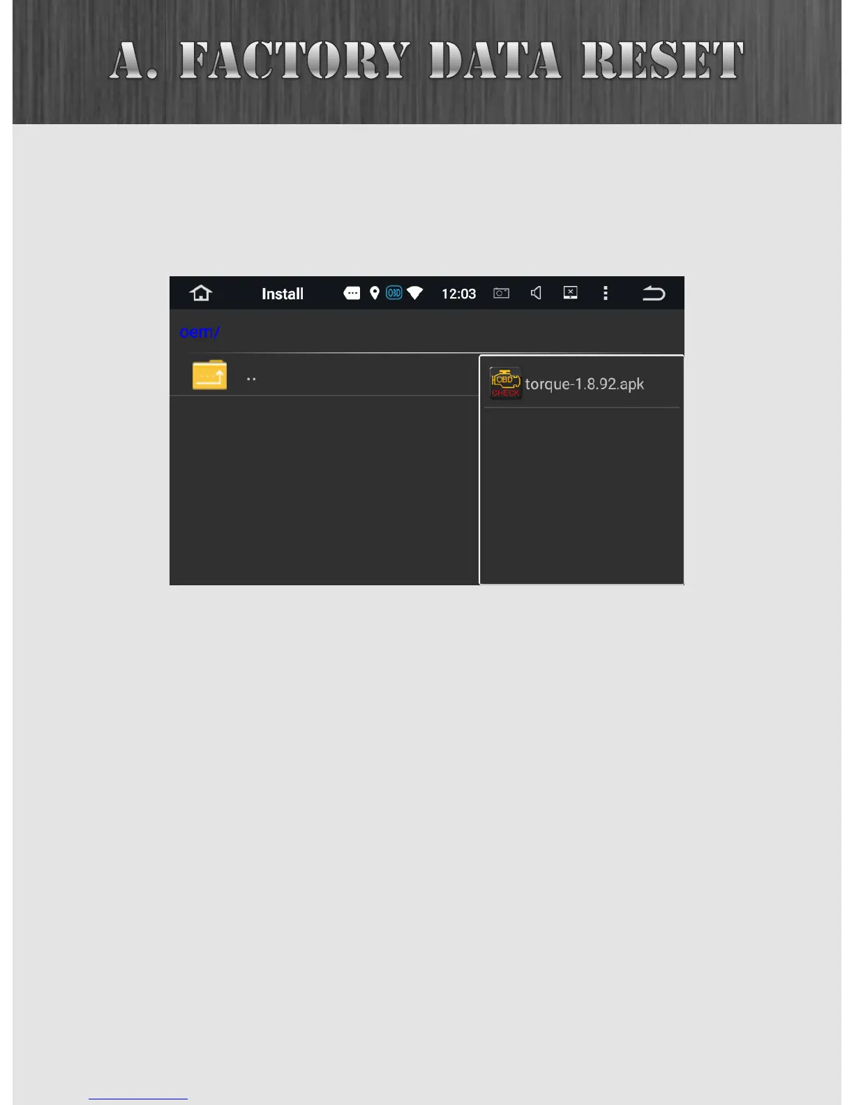 ApkInstaller app. Tap on INSTALL and under OEM, proceed to