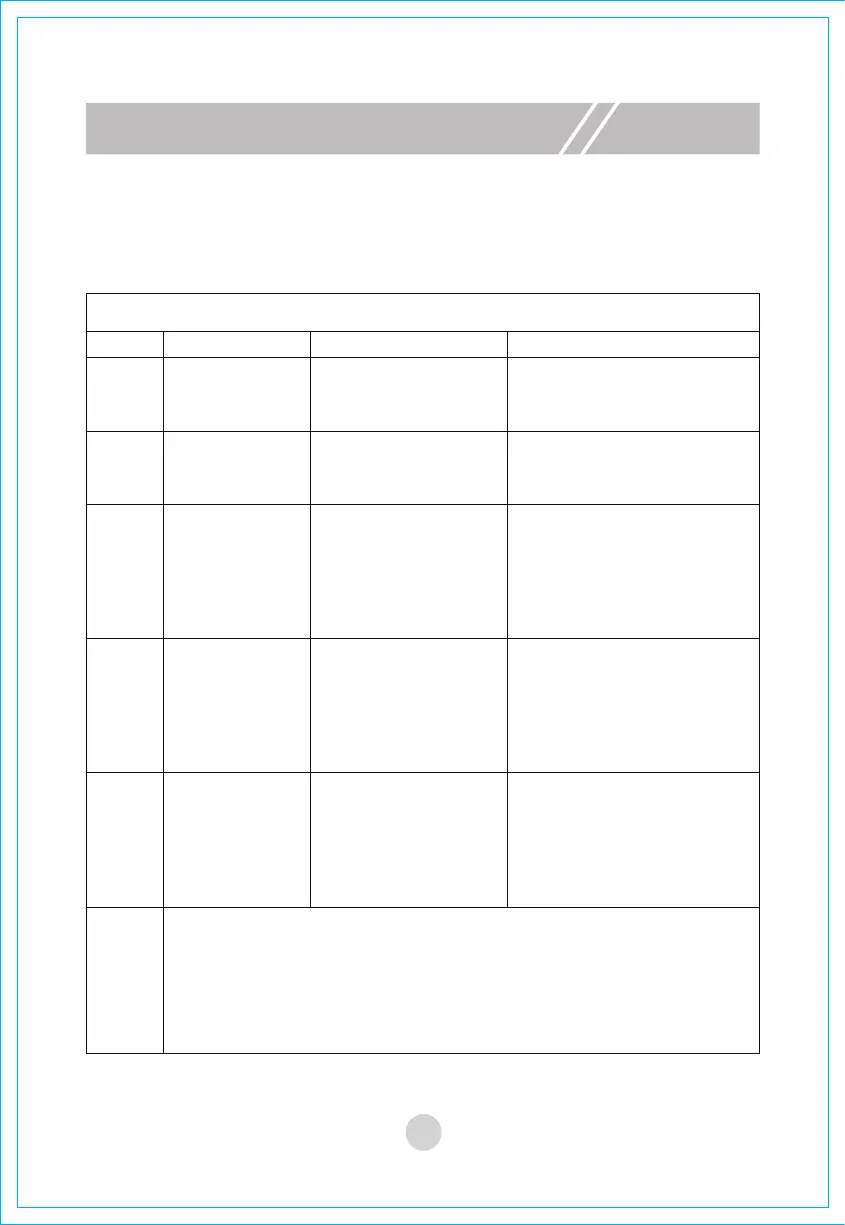 When common faults happen to the machine, refer to the table below for