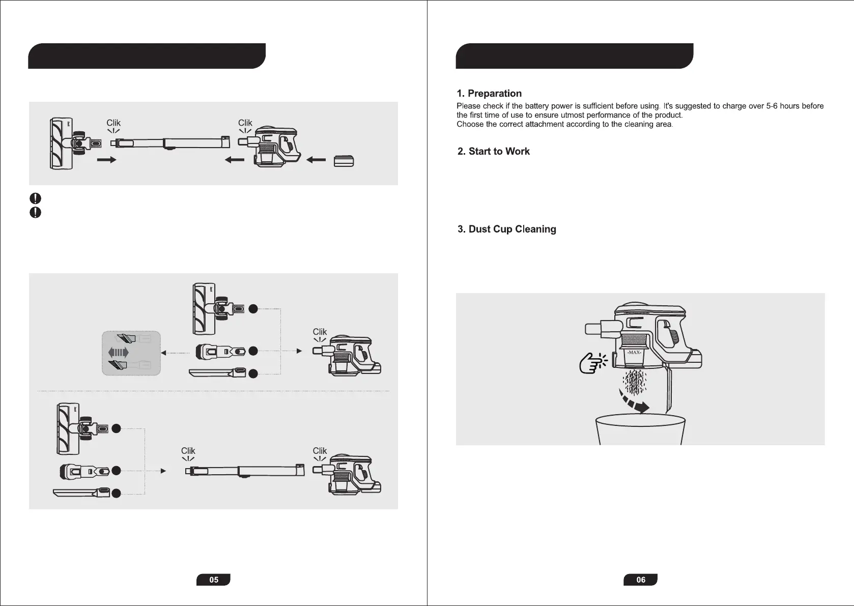 Please clean the dust cup in time when the -MAX- sign is approached.