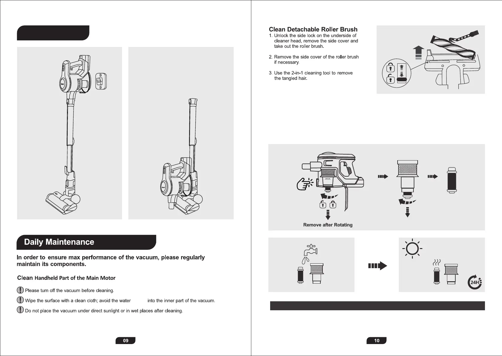 INSE N5 - Storage and Maintenance; Storage Methods; Cleaning the Roller Brush; Cleaning Dust Cup and Filter