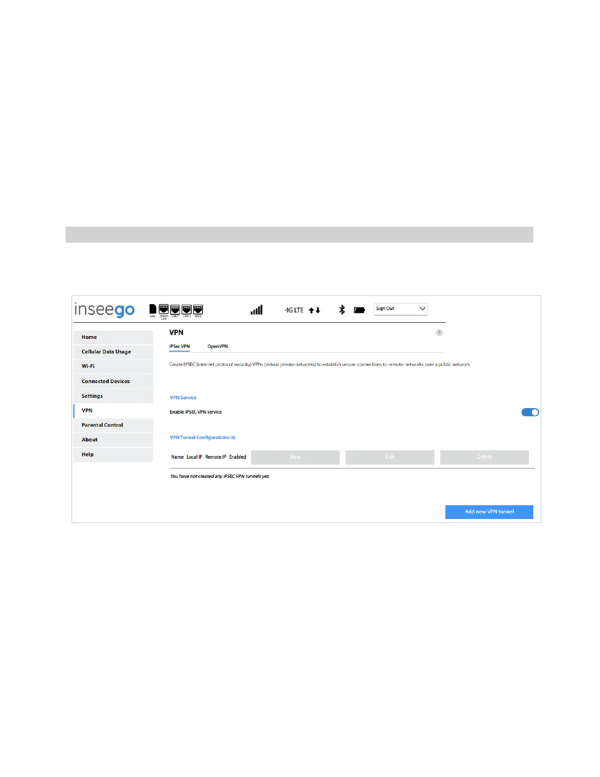 The 5G Indoor Router allows you to create IPSec VPNs to establish secure connections to remote