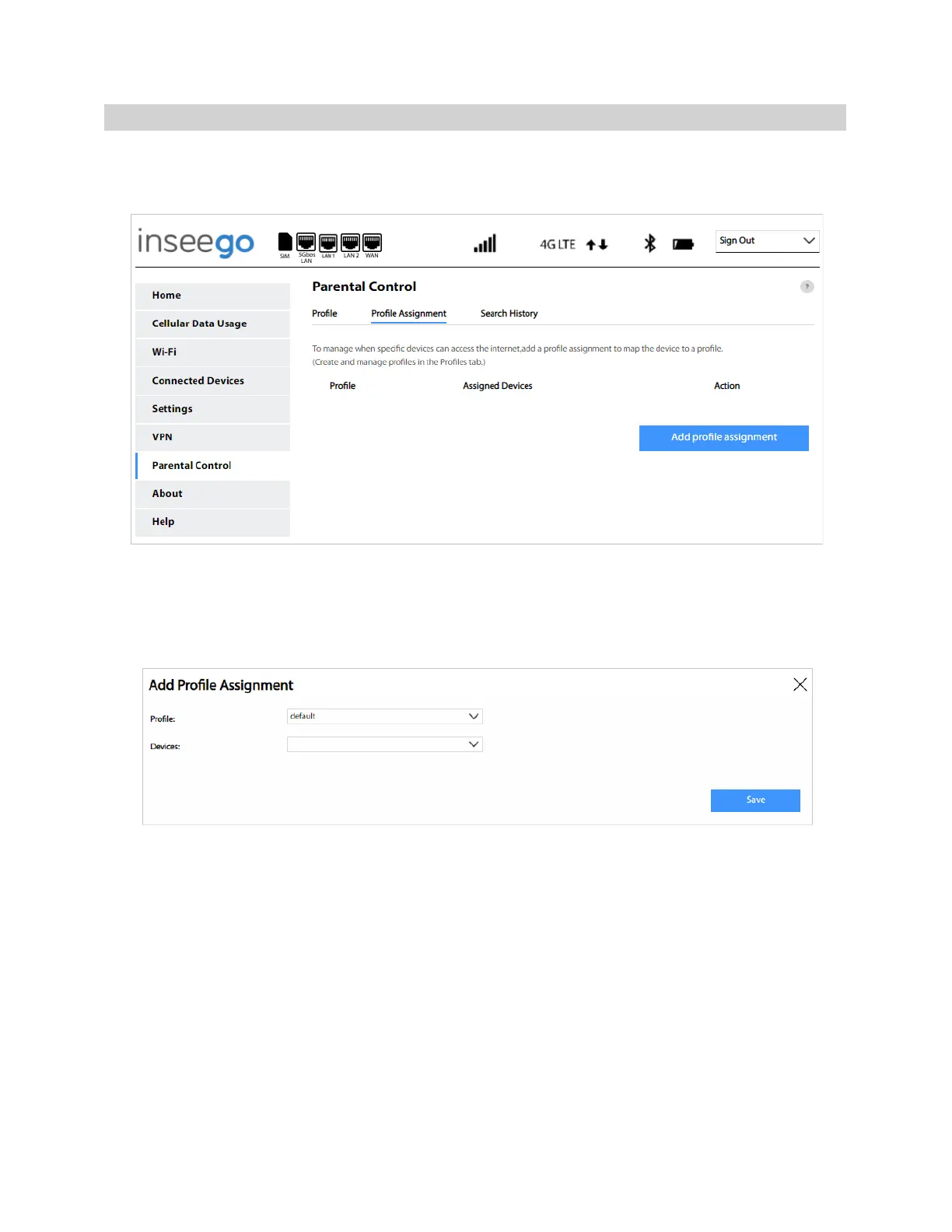 Add profile assignment: Select this button to assign a profile to devices. The Add profile assignment