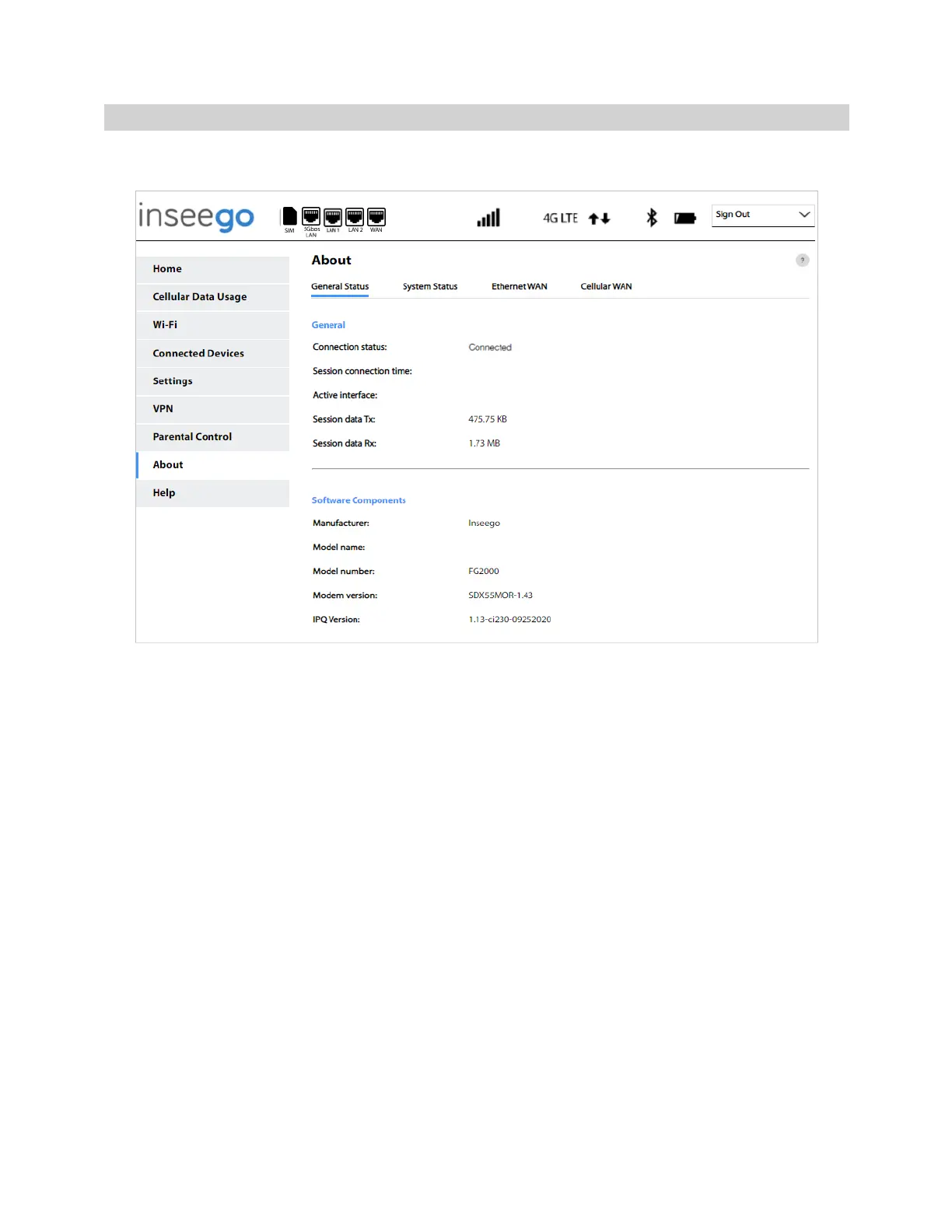 Active interface: The interface that is active (Ethernet WAN, Cellular WAN, or None).