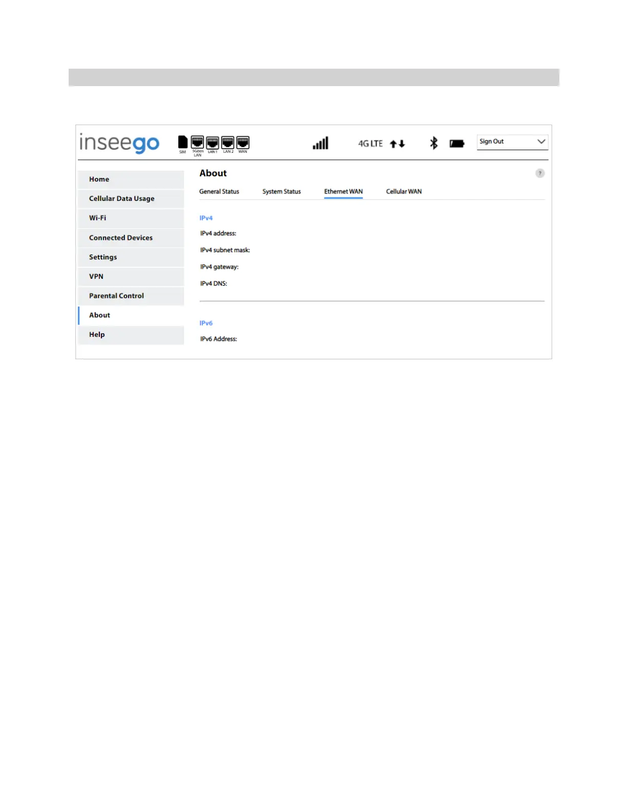 IPv4 address: The Internet IP address assigned to the 5G Indoor Router.