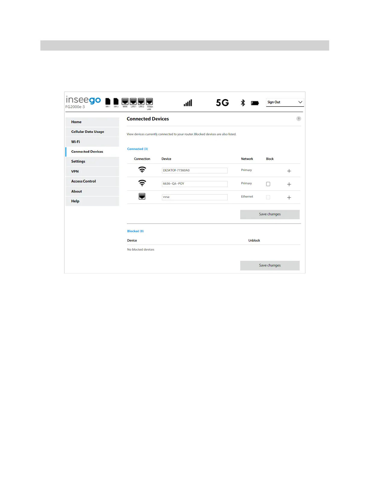 This page provides details about each device connected to the 5G Indoor Router and allows you to