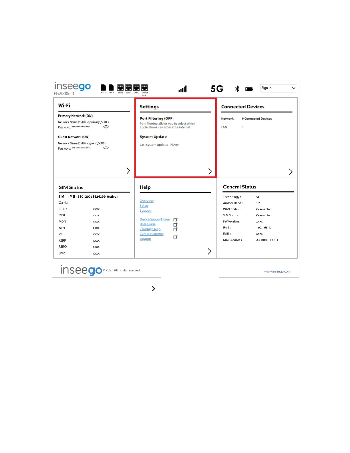 Inseego Wavemaker PRO FG2000e - Managing Settings