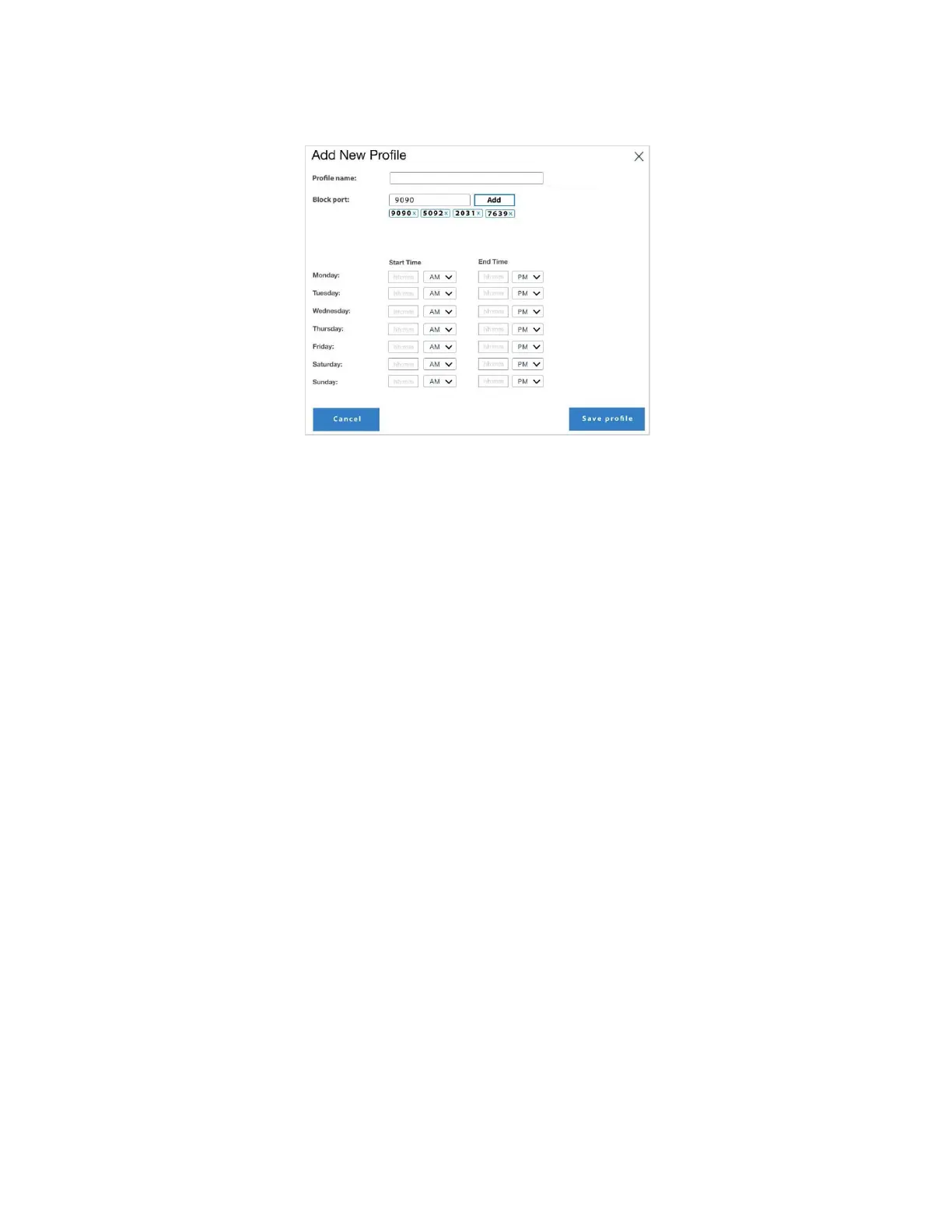 Access Times: Set the start and end times for the days you want to allow access for this profile.