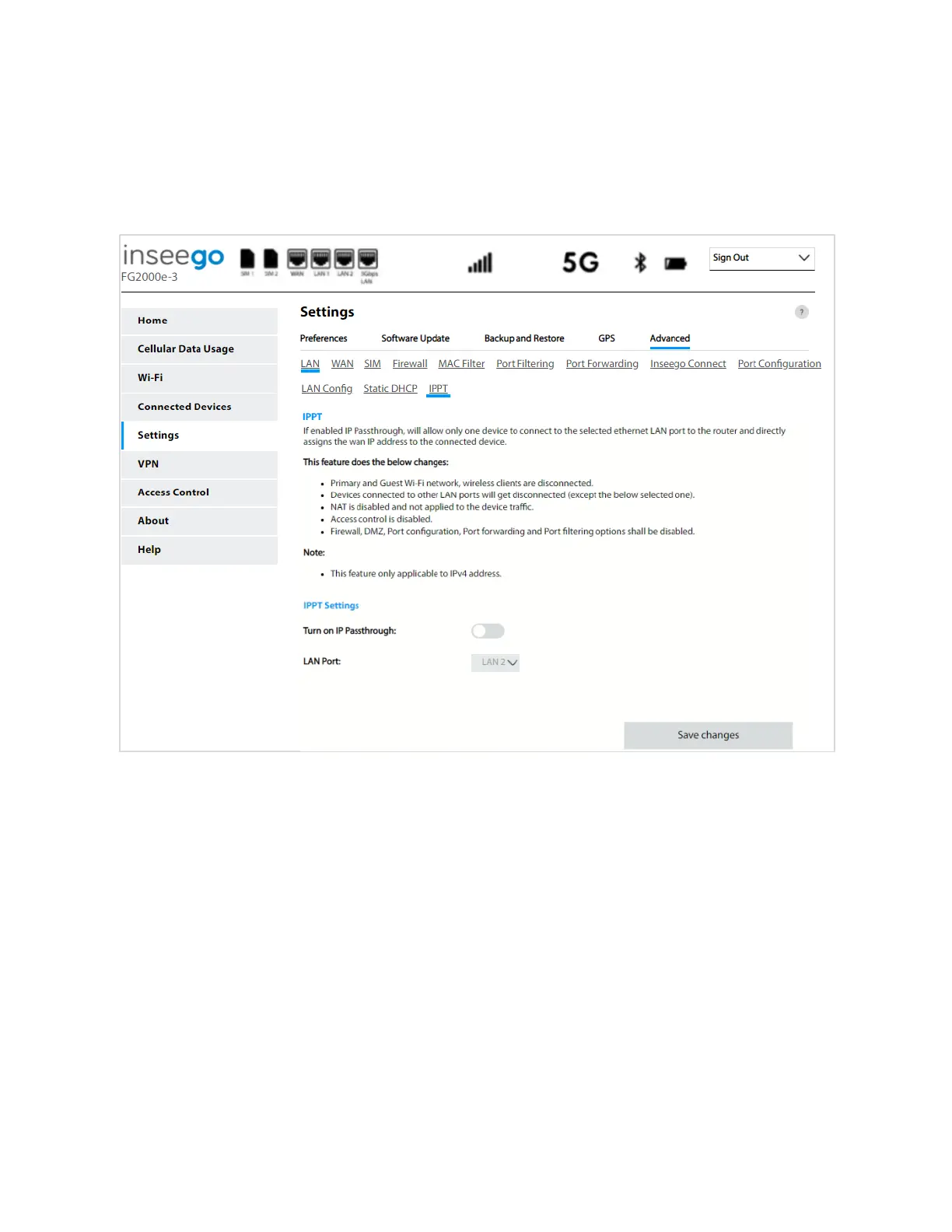 routing system. NOTE: When IP Passthrough is on, only one device will have internet access. All other