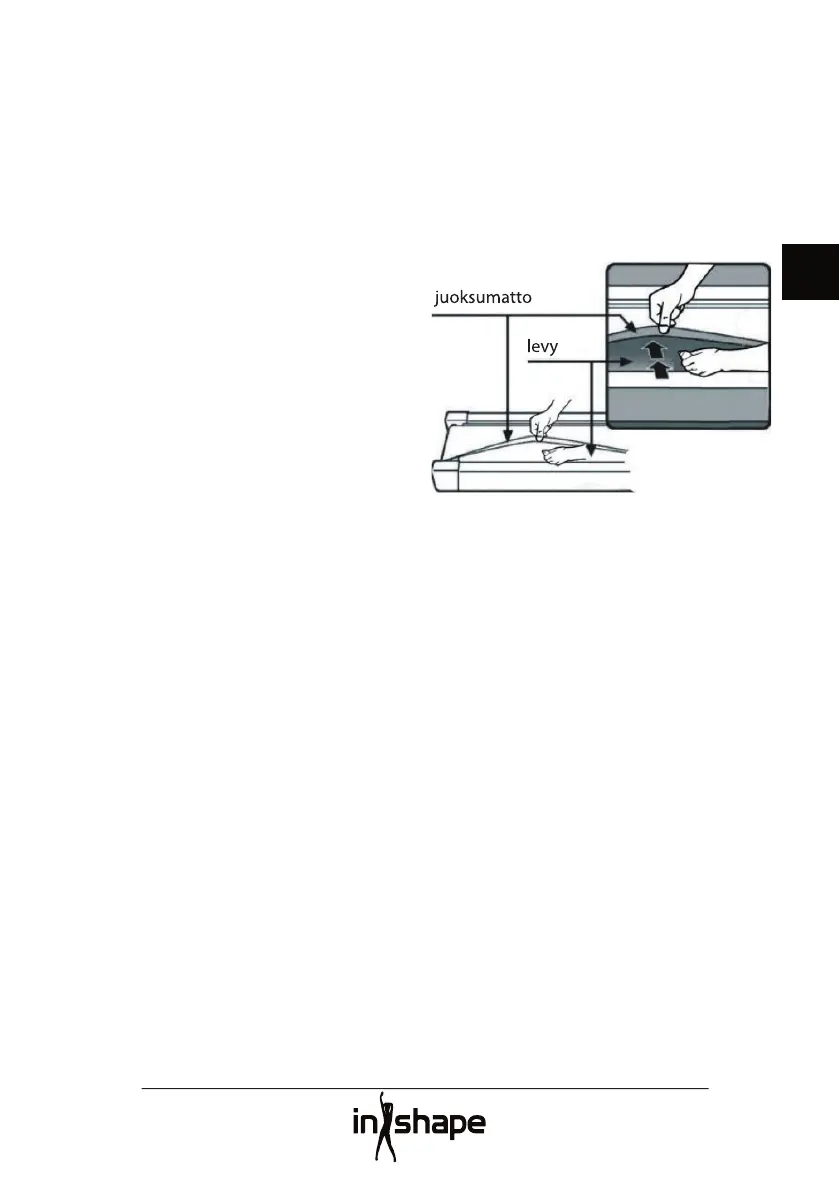 Juoksuhihnan sisäpuoli ja levy, jonka