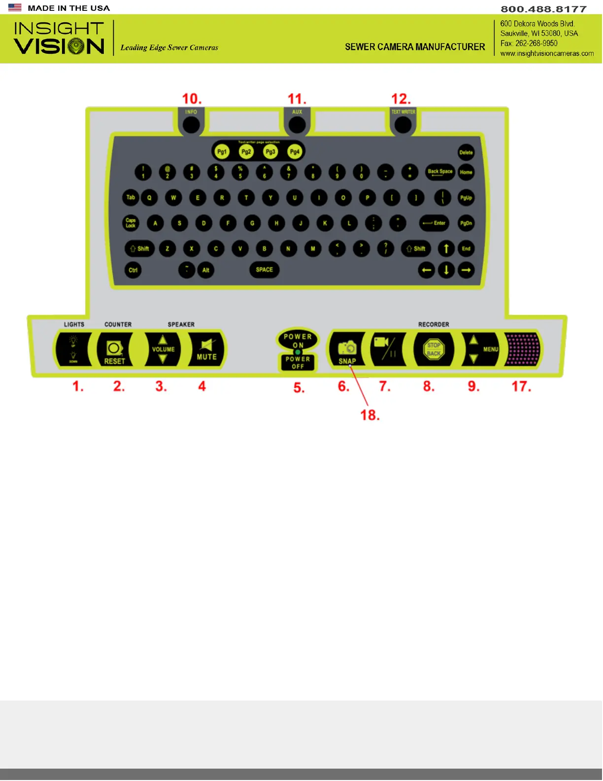 7. Record/Pause - Allows for recording of live video. Pressing the button during recording will pause current