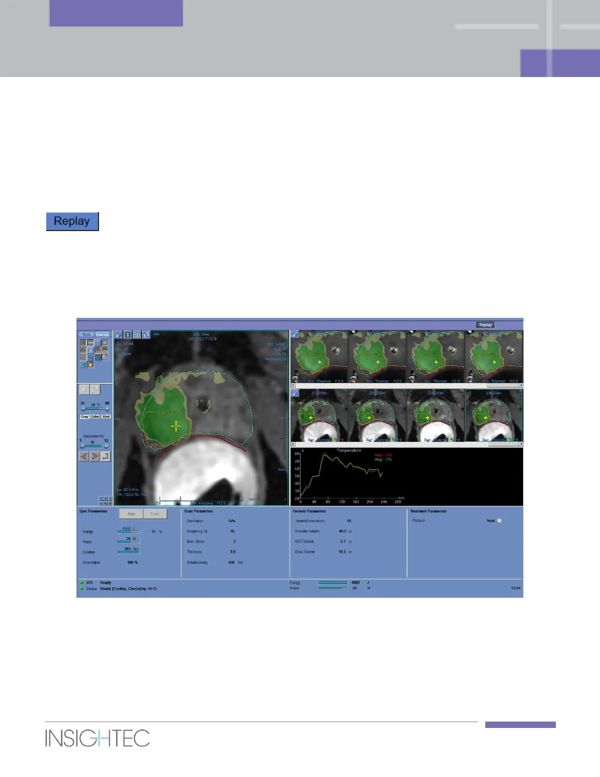 Replay mode enables the operator to analyze the results of previous sonications. Replay can also be