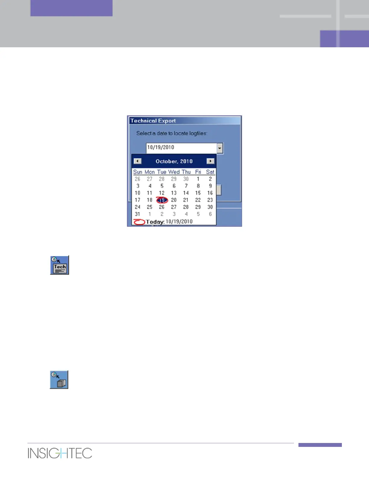 Export dialog box select a date to locate log files and click OK to start the export. Type in a title for