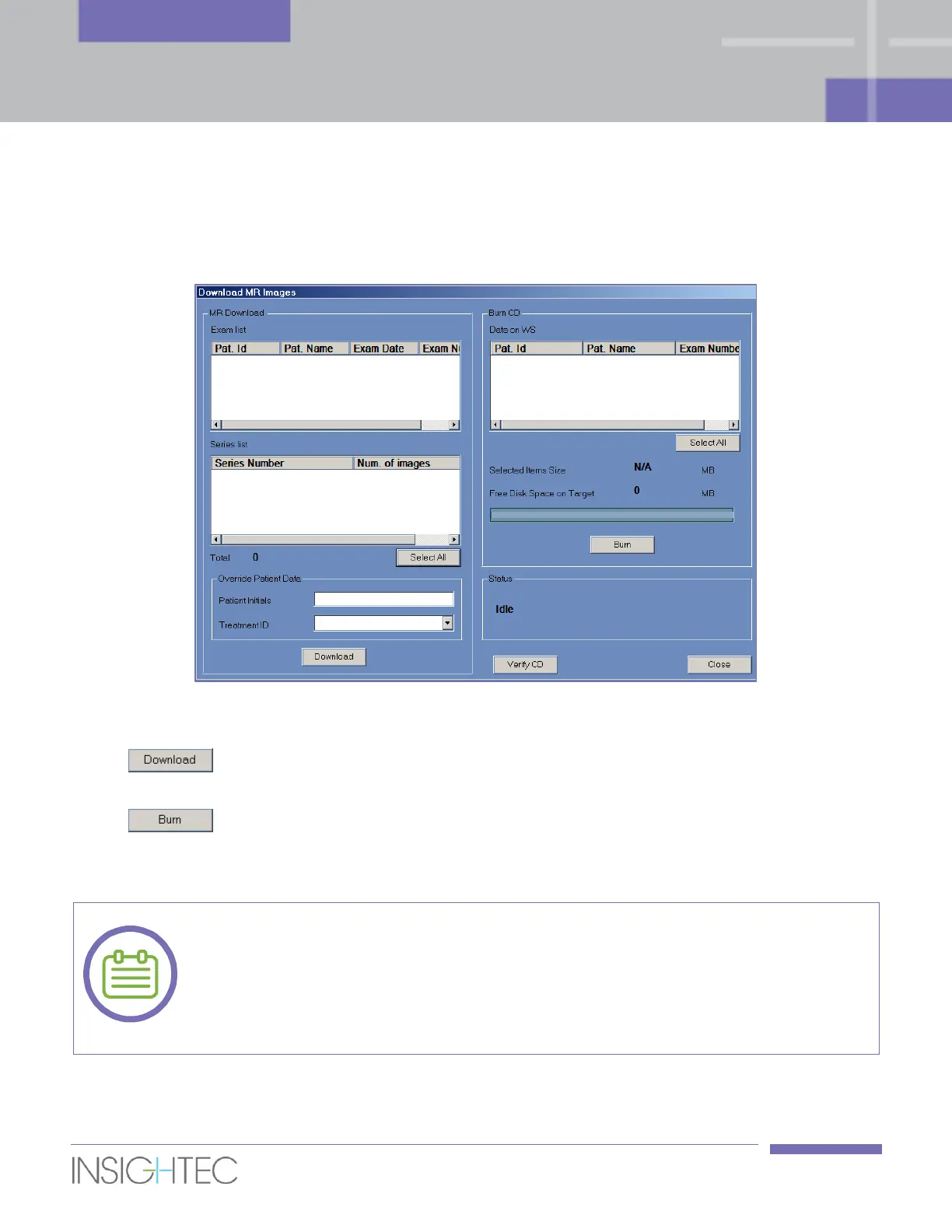6. Select the patients from Data on WS list and click the Burn button to export the images