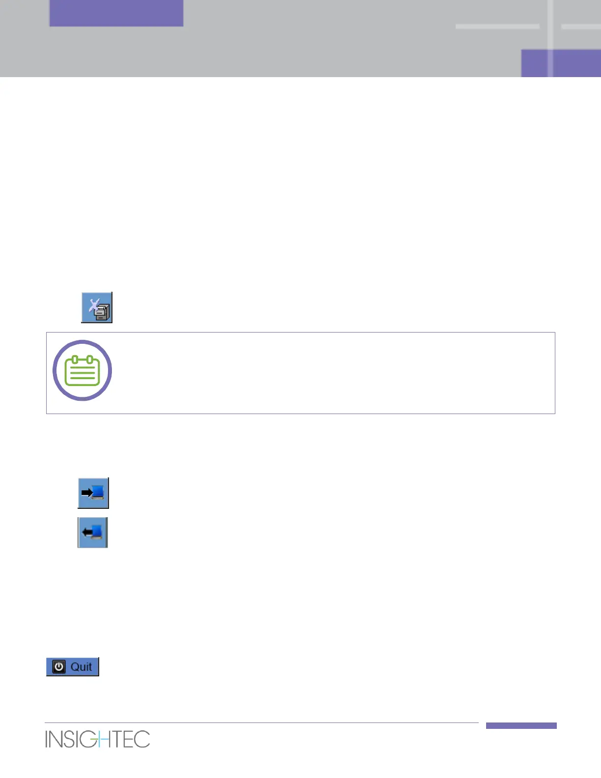 To leave Data Management, click the Quit button; the system will transition to the Startup